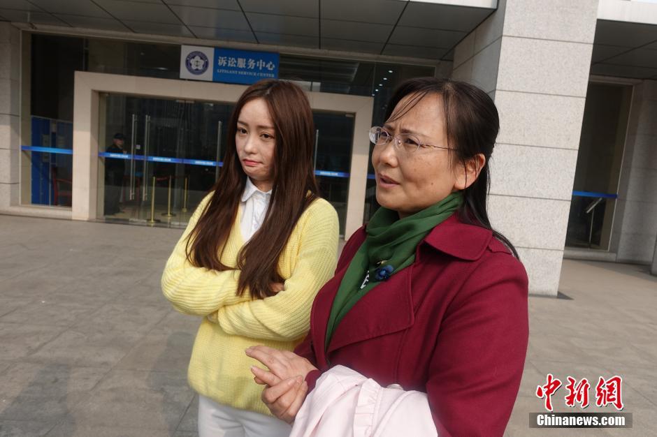 3月22日,周巖(左)和母親在庭外等待宣判結(jié)果。中新社記者張婭子 攝