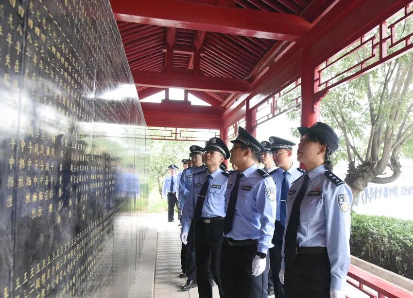 活動(dòng)上,全體人員警容嚴(yán)整、神情肅穆,整齊列隊(duì)在紀(jì)念碑前。伴隨著《獻(xiàn)花曲》,8名禮兵邁著整齊步伐,緩步走向革命烈士紀(jì)念碑前敬獻(xiàn)花籃。隨后,全場(chǎng)肅立,脫帽致敬向公安英烈默哀。默哀結(jié)束后,全體人員重溫了入警誓詞,烈士陳玉書之女、直屬分局新建路派出所民警陳慧梅作了表態(tài)發(fā)言。最后,全體人員手捧菊花,緩步繞行,瞻仰紀(jì)念碑,敬獻(xiàn)鮮花,向?yàn)樾弥萁夥攀聵I(yè)和公安事業(yè)英勇獻(xiàn)身的革命烈士致以崇高的敬意和深切的悼念。
