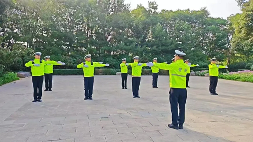迎著第一縷陽(yáng)光,沉睡的城市漸漸蘇醒,煥發(fā)出新的活力。 “嘀——”,清脆的哨聲劃破寧?kù)o,忻州交警全體人員迅速集結(jié)列隊(duì),以飽滿的熱情和堅(jiān)定的步伐,開始了新一天的晨操晨訓(xùn)。“向右看齊,向前看!”“報(bào)數(shù)!”在建設(shè)路與雁門大道路口、建設(shè)路與長(zhǎng)征街路口、七一路與長(zhǎng)征街路口……著裝整齊的交警們正在進(jìn)行規(guī)范的手勢(shì)訓(xùn)練和正步練習(xí),充滿活力的“熒光綠”“警察藍(lán)”成為了忻州街頭一道亮麗風(fēng)景線。這是忻州市公安局黨委為了提升交警隊(duì)伍的士氣和戰(zhàn)斗力,堅(jiān)持練兵日?;?、制度化、實(shí)戰(zhàn)化的一項(xiàng)重要舉措。 每日?qǐng)?zhí)勤前,交警們都會(huì)利用寶貴的半小時(shí)時(shí)間,集中開展交通指揮手勢(shì)、執(zhí)勤形象以及基本隊(duì)列禮儀專項(xiàng)訓(xùn)練。教官們嚴(yán)格要求,細(xì)致講解每一個(gè)動(dòng)作的要領(lǐng),并通過“晨會(huì)點(diǎn)評(píng)”來確保訓(xùn)練的質(zhì)量和效果。大隊(duì)領(lǐng)導(dǎo)親自參與訓(xùn)練,以身作則,復(fù)盤昨日工作、部署當(dāng)天任務(wù)。全體交警充分發(fā)揮不怕苦、不怕累的精神,對(duì)照標(biāo)準(zhǔn)動(dòng)作反復(fù)練習(xí),確保做到每個(gè)動(dòng)作規(guī)范、有力。 通過開展晨操晨訓(xùn),忻州交警的交通規(guī)范執(zhí)法能力、應(yīng)急處突能力和街面疏導(dǎo)水平得到了顯著提升。這不僅全面提升了隊(duì)伍的綜合素養(yǎng)和整體形象,也增強(qiáng)了隊(duì)伍的凝聚力,為做好交通管理工作打下了堅(jiān)實(shí)的基礎(chǔ)。 護(hù)校安園,撐起溫暖“平安傘”