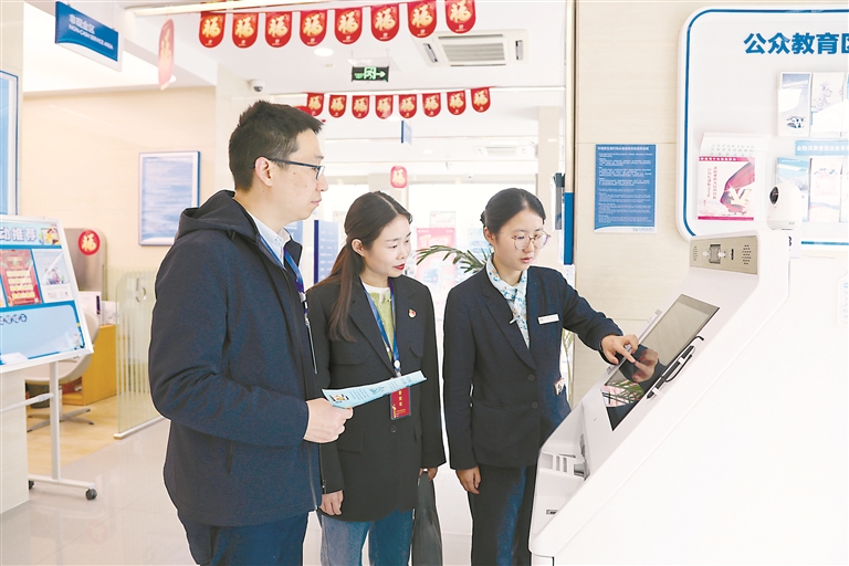 江蘇省盱眙縣紀委監(jiān)委緊盯黨員干部通過高息放貸、投資入股、代持或委托理財?shù)仁袌龌袨楂@取非法利益問題,深挖查處各類新型腐敗和隱性腐敗。圖為近日,該縣紀檢監(jiān)察干部在某銀行核實相關情況。王小龍 攝
