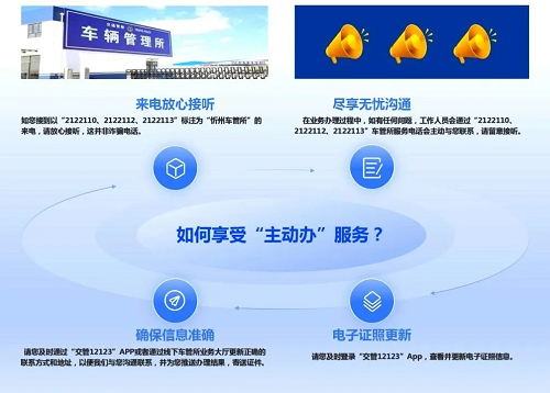 為了確?!爸鲃愚k”服務(wù)的順利推進(jìn),忻州市公安局交警支隊還提醒用戶,請及時登錄“交管12123”App查看并更新電子證照信息,同時確保在車管所登記的聯(lián)系方式和地址準(zhǔn)確無誤。這樣,車管所不僅能夠及時與用戶溝通聯(lián)系,還能將辦理結(jié)果和證件準(zhǔn)確無誤地寄送到用戶手中。