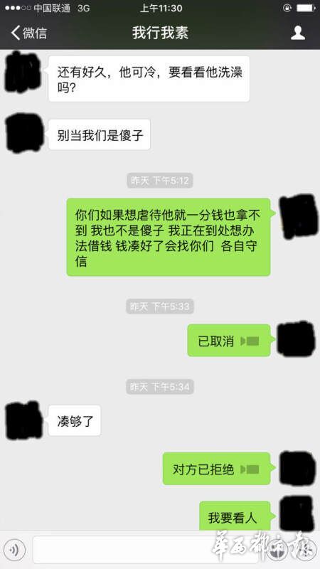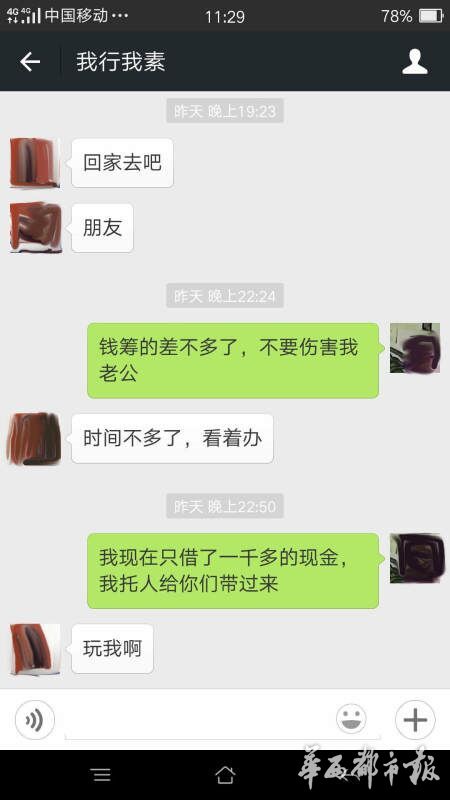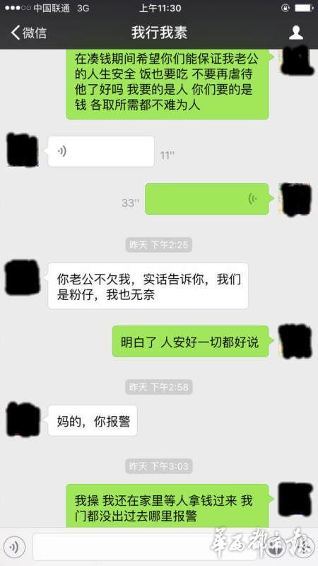 趙婷用微信與丈夫聯(lián)系,回復的人卻變成了“綁匪”,索要6萬元的贖金,否則撕票。趙婷說,一定會湊錢,但要保證王江的人生安全,不能虐待,各取所需都不為難人,“綁匪”卻一直逼問著錢的下落,并煞有其事地強調(diào)“不要報警”。