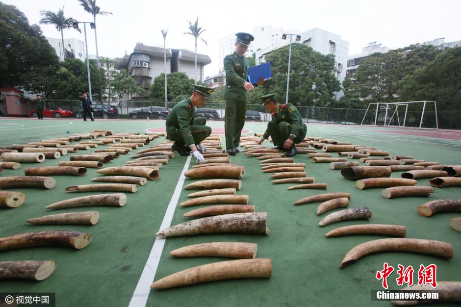3月21日,廣東公安邊防總隊(duì)正式對(duì)外通報(bào)稱,珠海市邊防支隊(duì)成功破獲一起特大涉嫌走私象牙案,查獲走私象牙221塊,共計(jì)約450千克,市值1800萬元人民幣,這是近年來全國(guó)邊防部門查獲的最大宗走私象牙案。圖片來源:視覺中國(guó)