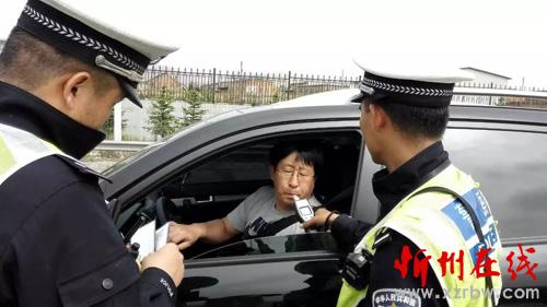 九大隊(duì)民警正在對(duì)過往司機(jī)進(jìn)行酒精測(cè)試