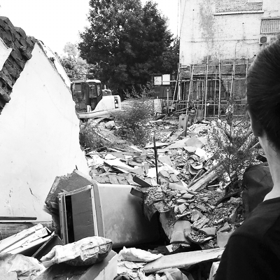 院里幾戶人家大多上了鎖,人去屋空。只有緊挨著93號(hào)院的幾間房,完全沒有鎖門的必要。除了還殘存的門窗和一道斜倚的斷墻,已經(jīng)和93號(hào)院的廢墟融為一體。