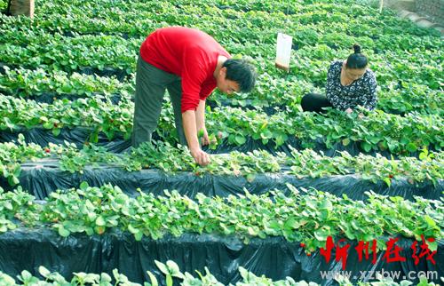 2月4日,原平市柳巷村農(nóng)民岳彬彬正在進(jìn)行草莓管理,新春佳節(jié)期間為觀光 游人們開(kāi)園采摘。該市積極引導(dǎo)農(nóng)民大力發(fā)展觀光生態(tài)旅游農(nóng)業(yè),已成為農(nóng)民增收致富的新亮點(diǎn),加快了奔小康的步伐。(趙春曉 攝)