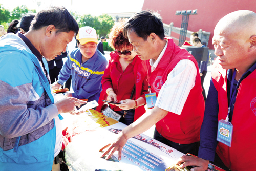 活動吸引了四面八方的群眾,大家紛紛拿出手機,掃描海報上的二維碼,現(xiàn)場關(guān)注“人說山西好風(fēng)光”微信公眾號,為美麗家鄉(xiāng)忻州投上一票?!靶弥菸锶A天寶,人杰地靈,游遍神州,最美忻州”,“在忻州大地,佛教圣地五臺山、雄偉壯觀雁門關(guān)、薈萃十景蘆芽山、險峻神奇老牛灣、世外桃源娘娘灘,諸多景觀世人驚嘆,魅力無窮,支持忻州申辦全省旅游發(fā)展大會”。市民在現(xiàn)場說。圖為投票現(xiàn)場(魯明強)