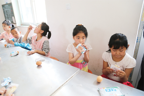 6 月23 日,靜樂縣中莊鄉(xiāng)中莊村小學學生正在吃領到的“營養(yǎng)餐”。截至目前,該縣共有4所初中、32 所小學、40 個教學點的2391 名中小學生每天均可享受到農(nóng)村義務教育“營養(yǎng)餐”所帶來的溫暖。(閆曉梅 攝)