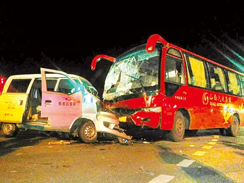 本報(bào)訊 7月10日22時(shí)20分左右,在忻州城區(qū)慕山橋北端的十字路口,一輛城際客運(yùn)汽車與一輛面包車相撞,客運(yùn)汽車前擋風(fēng)玻璃粉碎毀損,面包車前部嚴(yán)重變形,面包車上的傷者被隨后趕到的救護(hù)車送往醫(yī)院搶救,交警接警后也在第一時(shí)間趕赴現(xiàn)場調(diào)查事故原因、處理毀損車輛。