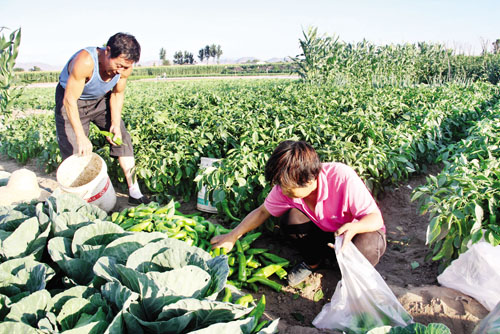 7月13日,原平市新原鄉(xiāng)解放街村農(nóng)民將收獲的青椒銷往市場。該市積極引導(dǎo)城郊農(nóng)民利用地理優(yōu)勢,大力調(diào)整種植結(jié)構(gòu),加大特色農(nóng)業(yè)開發(fā)力度,因地制宜種植紫甘藍、青椒等新鮮無公害蔬菜,不僅豐富了市民的菜籃子,而且鼓起了菜農(nóng)的錢袋子。(褚震 攝)