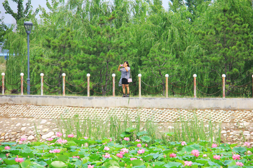 7月21日,原平市滹沱河生態(tài)公園游人正在賞荷花,品味其美麗。七月的荷花,飄香過池,清新自然的氣息,讓人心曠神怡!而在淅淅瀝瀝的細(xì)雨后賞荷花,又是一種情境:少了日曬的悶熱,或漫步荷池小道,或跨上拱橋,或合上雨傘,盡情享受雨后的清涼,欣賞池中荷花的千姿百態(tài)。