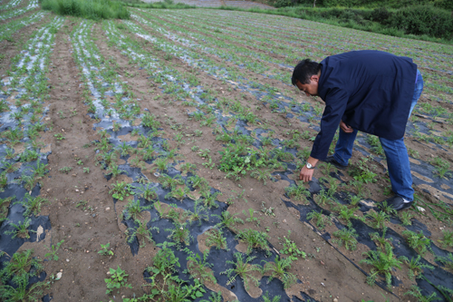 7月21日,靜樂縣堂爾上鄉(xiāng)呂呂溝村佛光合作社村民解晉才正在察看瑪咖長勢。近年來,靜樂縣積極引導(dǎo)農(nóng)民根據(jù)市場需求發(fā)展特色農(nóng)產(chǎn)品種植,先后引進(jìn)了藜麥、瑪咖、黑枸杞等特色農(nóng)產(chǎn)品,目前全縣種植38000余畝,形成了種植、采收、加工、銷售為一體的產(chǎn)業(yè)鏈,帶動農(nóng)民增收致富。(閆曉梅 攝)