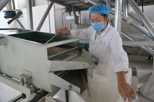 7月22日,靜樂縣華青藜麥產品開發(fā)有限公司的員工在篩選藜麥產品。這個綜合性農業(yè)開發(fā)企業(yè),堅持走“企業(yè)管理+種植基地”的運作模式,積極推動藜麥、小雜糧等規(guī)?;N植經營,成為當?shù)貛ьI農民致富的龍頭企業(yè)。(閆曉梅 攝)