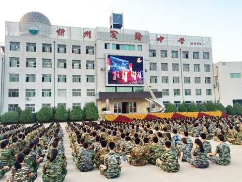 近期,我市高中陸續(xù)組織開(kāi)展新生軍訓(xùn)工作,旨在通過(guò)軍事化的訓(xùn)練培養(yǎng)和增強(qiáng)學(xué)生國(guó)防意識(shí)、集體意識(shí),并進(jìn)一步錘煉意志,增強(qiáng)體質(zhì),為高中三年的學(xué)習(xí)生活打下堅(jiān)實(shí)基礎(chǔ)。圖為八月二十一日,忻州市實(shí)驗(yàn)中學(xué)新生在軍訓(xùn)間隙觀看學(xué)校宣傳片。(實(shí)習(xí)記者 郭浩東 攝)