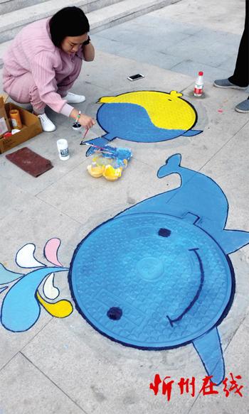 “井蓋涂鴉非常有藝術(shù)感,看到這樣的街頭細(xì)節(jié),心情都會開朗起來?!痹诨▓@街口忻動購物廣場記者見到了井蓋涂鴉的實施商鋪金伯利鉆石的負(fù)責(zé)人,他說,平時感覺整條街商鋪門口的井蓋太多而且雜亂無序,色彩單調(diào)也不美觀,正趕上全城創(chuàng)衛(wèi)就將門口的井蓋涂鴉,給街道添色彩,給城市添活力。(張引弟 攝)