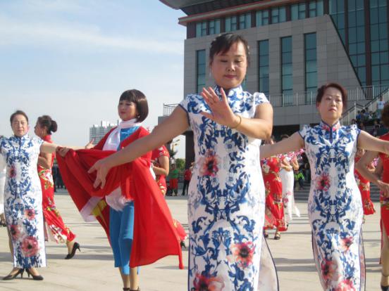 秋陽高照,羽衣霓裳,樂曲悠揚。24日,河曲縣廣場舞協(xié)會主辦迎國慶大型專場展演,慶祝偉大祖國華誕。來自縣城及農(nóng)村文化大院的15支廣場舞隊獻上豐富多彩的節(jié)目,祝福偉大祖國繁榮昌盛。(賈金理 攝)
