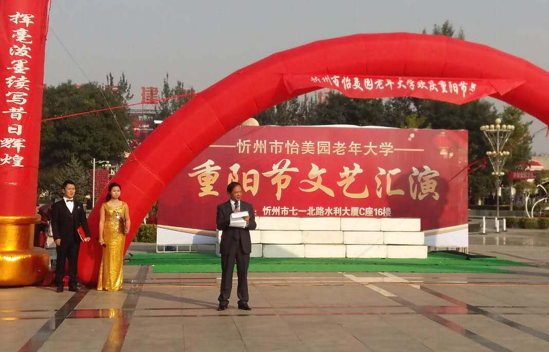 伴隨著怡美園老年大學全體學員共同表演的舞蹈《歡聚一堂》,忻州市怡美園老年大學校長鄧九高代表該校全體師生對老年朋友們致以節(jié)日的慰問,在表達了提倡繼續(xù)發(fā)揚尊老愛老的中華傳統(tǒng)美德,經(jīng)營好自己的家庭,盡孝心、促和諧,為構(gòu)建美好和諧的社會氛圍貢獻力量的同時,也對年輕人寄以希望,享受生命,感恩陽光。