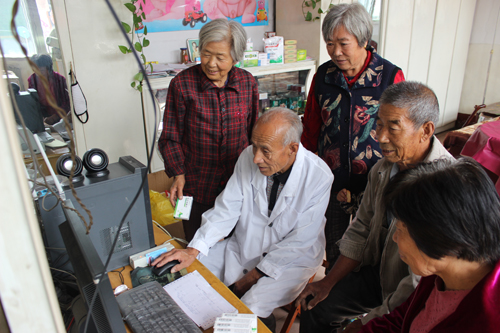 來到北義井村衛(wèi)生所,不足20平米的診療室里已經(jīng)站滿了患者。醫(yī)師張喜旺向高血壓病人李梅蘭詢問病情后又為其測量了血壓。緊接著,他打開區(qū)域衛(wèi)生信息管理平臺,拿著農(nóng)村合作醫(yī)療卡在刷卡機(jī)上一刷,信息就自動提取到平臺,張喜旺結(jié)合病人病情開了電子門診處方并下藥,費(fèi)用直接從農(nóng)合醫(yī)療卡中扣除,整個過程不到十分鐘。張喜旺說,村民們大都都是奔著診療方便和藥品范圍內(nèi)免費(fèi)而來,這也大大緩解了村民看病難的問題。