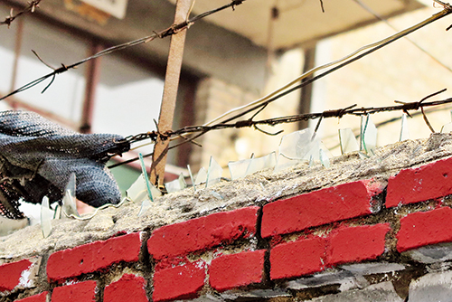 近日,市民向本報反映,位于城區(qū)利民西街北三巷靠近和平街的某單位宿舍臨街圍墻上,布滿鐵絲網(wǎng)和碎玻璃,影響市容市貌,建議用監(jiān)控系統(tǒng)取而代之。