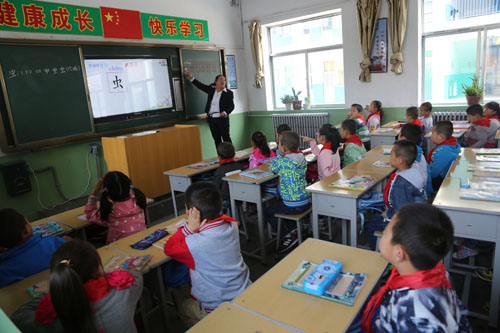 近日,在靜樂縣愛樂希望小學(xué),學(xué)生正通過交互式多媒體教學(xué)方法上課。老師高興地說:“有了多媒體真方便,以前講一個例題要花幾分鐘抄寫在黑板上,現(xiàn)在只需幾秒鐘就顯示在頻幕上,既節(jié)省時間又提高課堂效率?!苯陙?,該縣加大教育投資力度,改善辦學(xué)條件,為學(xué)生上課提供便利。(閆曉梅 攝)