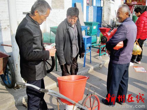 十一月十七日是河曲縣巡鎮(zhèn)趕集日,十里八鄉(xiāng)的農(nóng)民紛紛趕來選購小型農(nóng)機(jī)具。近年來,該縣農(nóng)民在農(nóng)機(jī)具購置補(bǔ)貼政策鼓勵(lì)下,購買農(nóng)機(jī)熱情高漲,極大地提高了農(nóng)業(yè)生產(chǎn)效率。圖為農(nóng)民正在購買播種機(jī)。(賈金理 攝)