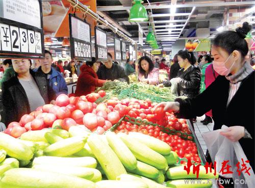 11月18日,原平市市民正在超市挑選各種新鮮蔬菜。該市大力發(fā)展高效設(shè)施農(nóng)業(yè)大棚蔬菜種植業(yè),使市民們一年四季吃上了鮮菜,同時(shí)也增加了農(nóng)民收入。(趙春曉 攝)