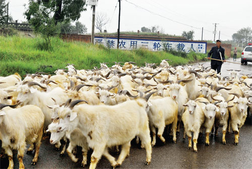 偏關(guān)縣大力發(fā)展健康養(yǎng)殖業(yè),特別是將養(yǎng)羊作為農(nóng)民脫貧致富的重要渠道,今年盡管羊價較低,但農(nóng)民認為養(yǎng)羊還是有利可圖又保險,仍是紛紛買羊。圖為賀家山村養(yǎng)羊大戶的羊群。(楊峻峰 攝)