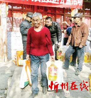 驅車行駛一個多小時后,大家來到了位于忻州城西的李家垴村。村里現(xiàn)在常住人口只有24戶,多是孤寡老人,車友們?yōu)槊繎羲蜕狭艘环荨靶麓捍蠖Y包”。領到米面的王變花老人激動地說道:“國家的政策越來越好,村里人辦了低保、五保,衣食無憂,還有你們這樣的愛心人士關心我們,不僅給米面油,還親自送到家里來,今年能過個好年啦!”圖為村民滿載而歸(實習記者 許凈)