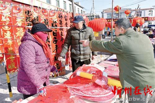 春節(jié)臨近,代縣城鄉(xiāng)農(nóng)貿(mào)市場(chǎng)呈現(xiàn)出商品豐富、貨源充足、年味十足的喜人景象。春聯(lián)、燈籠、窗花、年畫(huà),喜慶吉祥,十分暖眼;土特產(chǎn)、肉食品、新鮮菜、小商品,應(yīng)有盡有,任人選挑。圖為顧客正在挑選春聯(lián)。石俊文 攝