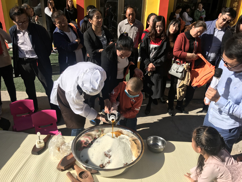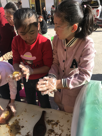 一方水土養(yǎng)一方人,一塊小餅生一地財。神池縣大人、小孩特別感恩當地政府引導農民把地產胡油自然資源優(yōu)勢傳化為商品經濟優(yōu)勢,以月餅帶動當地農民脫貧增收發(fā)展經濟的功勞。9月16曰,該縣一家校外語言培訓機構在金口玉言口才學校的校園里別開生面舉辦了“迎中秋食品安全知識宣傳暨傳承神池傳統(tǒng)月餅手工戶外體驗活動”。此舉不僅培養(yǎng)了小孩熱愛家鄉(xiāng)的意識和感恩心理,也提高小孩熱愛勞動的動手能力,同時加強孩子們的食品安全知識,受到好評。記者現(xiàn)場看到,家長們從家里帶來了烤箱,學校準備好了玫瑰、青紅絲、核桃仁、花生米、葡萄干、芝麻等餡料,孩子們你一言我一語討論著自己動手做月餅的事,在觀看面點阿姨細致地講解與示范后,每個小朋友都躍躍欲試,體驗親手做家鄉(xiāng)特產的樂趣。