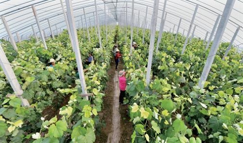 前幾年,定襄的設(shè)施農(nóng)業(yè)種植分散、設(shè)施條件差、收益低。受祿鄉(xiāng)在發(fā)展設(shè)施農(nóng)業(yè)的過程中總結(jié)出了“支部引領(lǐng),村委支持,黨員帶頭,群眾跟進(jìn),吸納貧困戶”的經(jīng)驗(yàn)并在全縣起到示范作用。建規(guī)模園區(qū)土地流轉(zhuǎn)首當(dāng)其沖,受祿鄉(xiāng)在流轉(zhuǎn)土地的時(shí)候,采取“農(nóng)民報(bào)名,統(tǒng)一規(guī)劃,簽訂合同”的辦法。流轉(zhuǎn)集中的土地,各村負(fù)責(zé)“三通一平”。定襄的設(shè)施農(nóng)業(yè),已經(jīng)從以前的改良式塑料大棚,發(fā)展到現(xiàn)在廣泛推廣的下凹式日光溫室和全鋼架春秋大棚,棚內(nèi)作物也實(shí)現(xiàn)了由普通蔬果到甜瓜、草莓、西蘭花等“新特優(yōu)”產(chǎn)品的轉(zhuǎn)型。