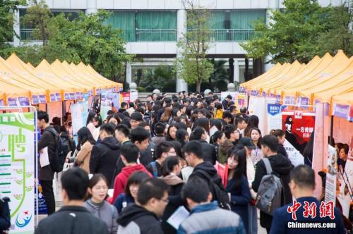 資料圖:沈陽師范大學(xué)2019屆畢業(yè)生春季大型就業(yè)雙選會。中新社記者 于海洋 攝
