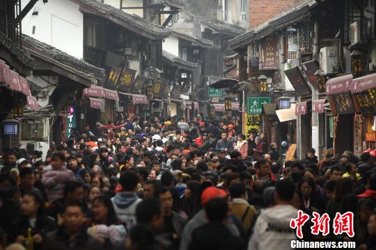 資料圖:游客擠滿了古鎮(zhèn)街道。陳超 攝