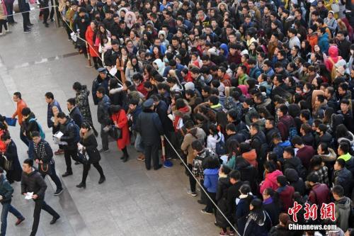 資料圖:山西太原一公務(wù)員考點(diǎn),考生排隊(duì)準(zhǔn)備進(jìn)入考場。武俊杰 攝