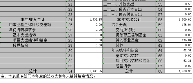 3、年末結(jié)轉(zhuǎn)情況:本年度財(cái)政補(bǔ)助結(jié)轉(zhuǎn)62.31元,非財(cái)政補(bǔ)助結(jié)轉(zhuǎn)0萬元,原因?yàn)椴删幭到y(tǒng)升級項(xiàng)目未完成。