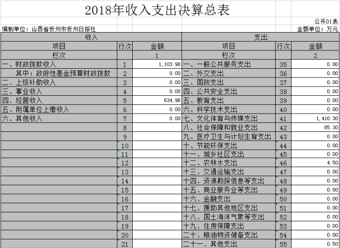 (三)部門決算單位構(gòu)成:忻州日報(bào)社是一級預(yù)算單位,無下屬單位。部門預(yù)算只有一個單位,即忻州日報(bào)社。