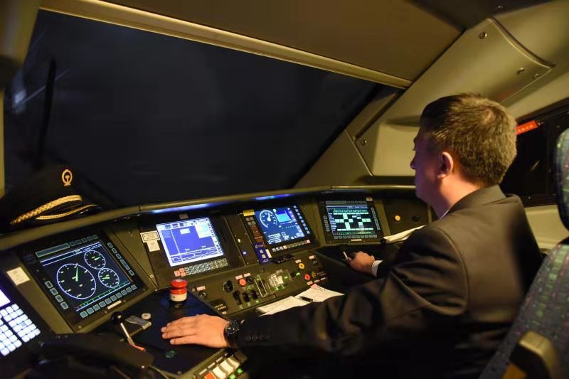 當(dāng)D6770次列車到達(dá)呼和浩特東站,弓國(guó)慶登上機(jī)車,與換班司機(jī)交接完畢后,插入IC卡,認(rèn)真核對(duì)行車數(shù)據(jù)、確認(rèn)操縱臺(tái)各儀表……各項(xiàng)安全準(zhǔn)備工作無誤后,隨著機(jī)車前方發(fā)車信號(hào)變?yōu)榫G燈,與車站進(jìn)行車機(jī)聯(lián)控確認(rèn),隨著一聲汽笛長(zhǎng)鳴,動(dòng)車組緩緩駛出呼和浩特東站?!皬氐撞t望,確認(rèn)信號(hào),高聲呼喚,手比眼看”的標(biāo)準(zhǔn)化作業(yè)與每三十秒腳踩提醒踏板的一系列操作流暢默契……盡管這種周而復(fù)始的工作他已重復(fù)了成千上萬遍,但從不敢松懈。