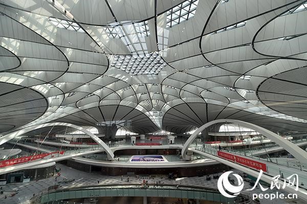 北京大興國(guó)際機(jī)場(chǎng)作為獻(xiàn)禮新中國(guó)成立70周年的國(guó)家標(biāo)志性工程,地處京津冀核心地帶,是未來國(guó)家乃至世界級(jí)綜合交通樞紐。從空中俯瞰海星狀的航站樓,五個(gè)支廊呈放射狀從航站樓中心向外延伸出去,像一只鋼鐵大鳥展翅欲飛。