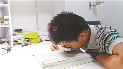 宋奕辰必須依靠放大鏡或助視器才能看清文字