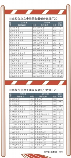 從2015年和2016年錄取線可以看出,清華已經(jīng)連續(xù)兩年超越北大領跑各高校。比如去年,清華大學在京文科錄取最低分為677分,比北大高出6分;理科錄取最低分為694分,比北大高1分。