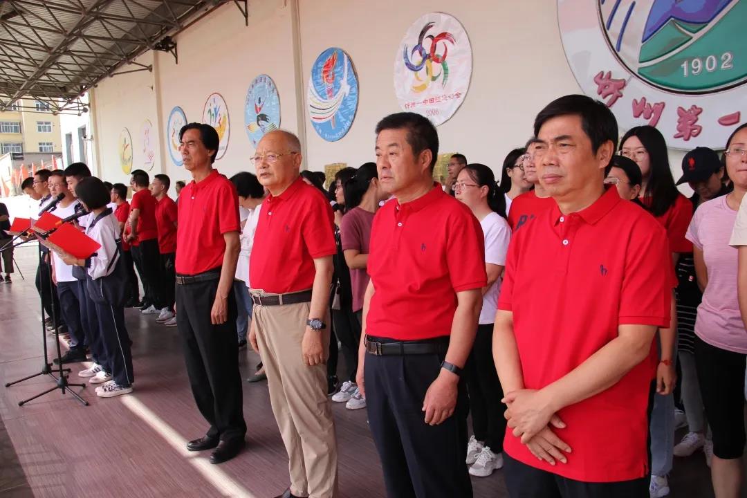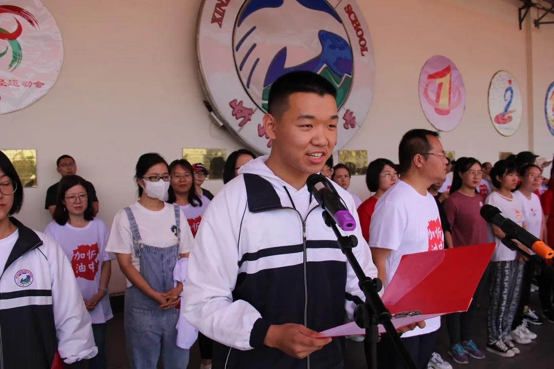 學生代表602班王一平同學在儀式上發(fā)言 校長陳培器向2020屆學子下達高考出征令,為高三年級出征壯行,堅定忻中勇士決勝高考的必勝信念,堅信大家定能一往無前,所向披靡,再奪高峰。出征令下達后,副校長白昌宏,政教處主任王新林,高三年級主任賀玉珍、何強高舉校旗、級旗帶領(lǐng)2020屆畢業(yè)學子跑步向前,高一、高二師生夾道掣旗助威,高喊“忻中加油、忻中必勝!”,全體畢業(yè)學子引吭宣誓,錚錚誓言穿云裂石,響遏行云。旌旗獵獵,聲震長空,雄心和智慧在激情七月閃光,青春和夢想在盛夏忻中涌動。