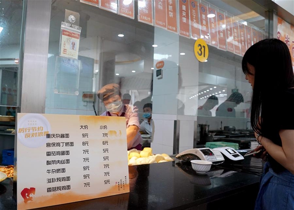 上海交通大學(xué)的食堂的各類面條實(shí)行大份、小份供餐。9月1日起,上海交通大學(xué)的學(xué)生開始分批、錯時到校開學(xué)。開學(xué)后,學(xué)校食堂加強(qiáng)節(jié)約糧食、光盤行動的宣傳,并采取多項(xiàng)措施引導(dǎo)師生員工文明用餐,杜絕浪費(fèi)。