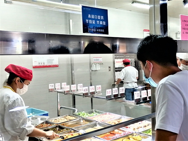 天津大學(xué)學(xué)生食堂新學(xué)期分別推出小份菜窗口、大小份售賣、小碗菜自選等售賣形式,倡導(dǎo)物盡其用,鼓勵餐后剩余打包。同時對于雞腿、鴨腿、雞翅、魚等品種,可根據(jù)個數(shù)、塊數(shù)規(guī)格售賣或稱重售賣。售賣形式的豐富,便于就餐者按需取用,既節(jié)約又實(shí)惠。