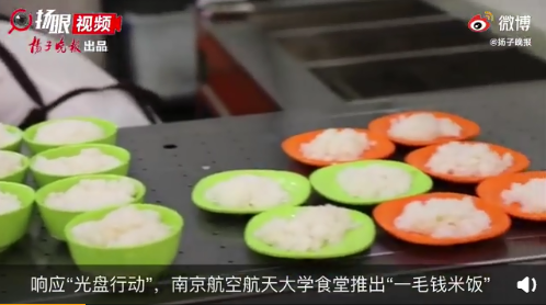 南京航空航天大學(xué)食堂不僅推出“一毛錢米飯”,還推出“光盤獎勵”,只要“光盤”,便能得到酸奶等獎勵。