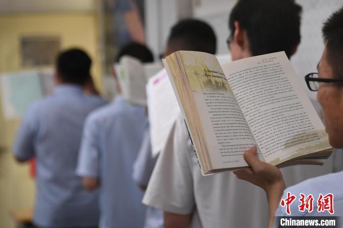 資料圖:教室外走廊里,老師們?yōu)榭忌鷤兇鹨山饣?,助力學(xué)生迎戰(zhàn)高考。 何蓬磊 攝