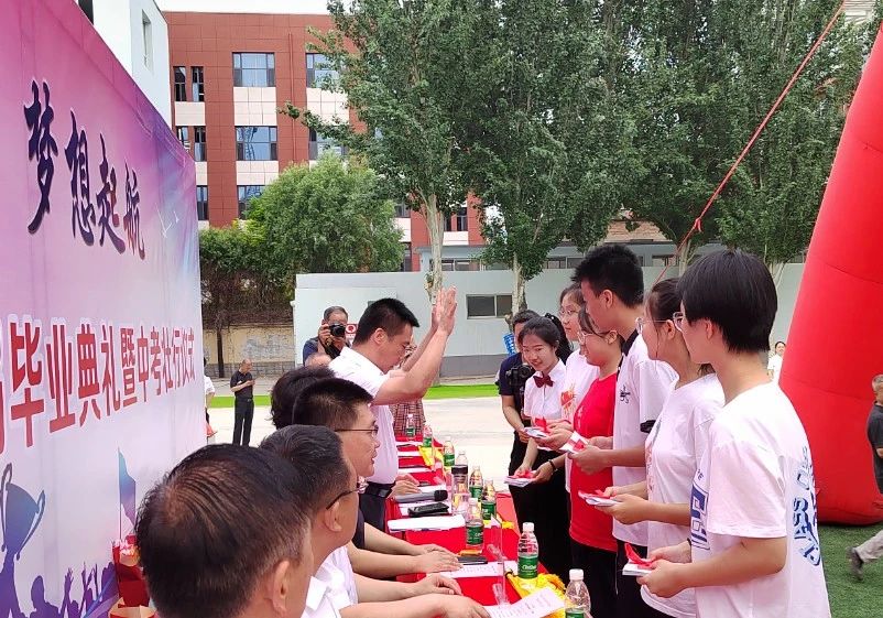 趙俊瑞校長為初三學(xué)子頒發(fā)畢業(yè)證書,隨著一份份畢業(yè)證書的發(fā)放,畢業(yè)生們與五中的故事也將落下帷幕,但青春不散,記憶不散。