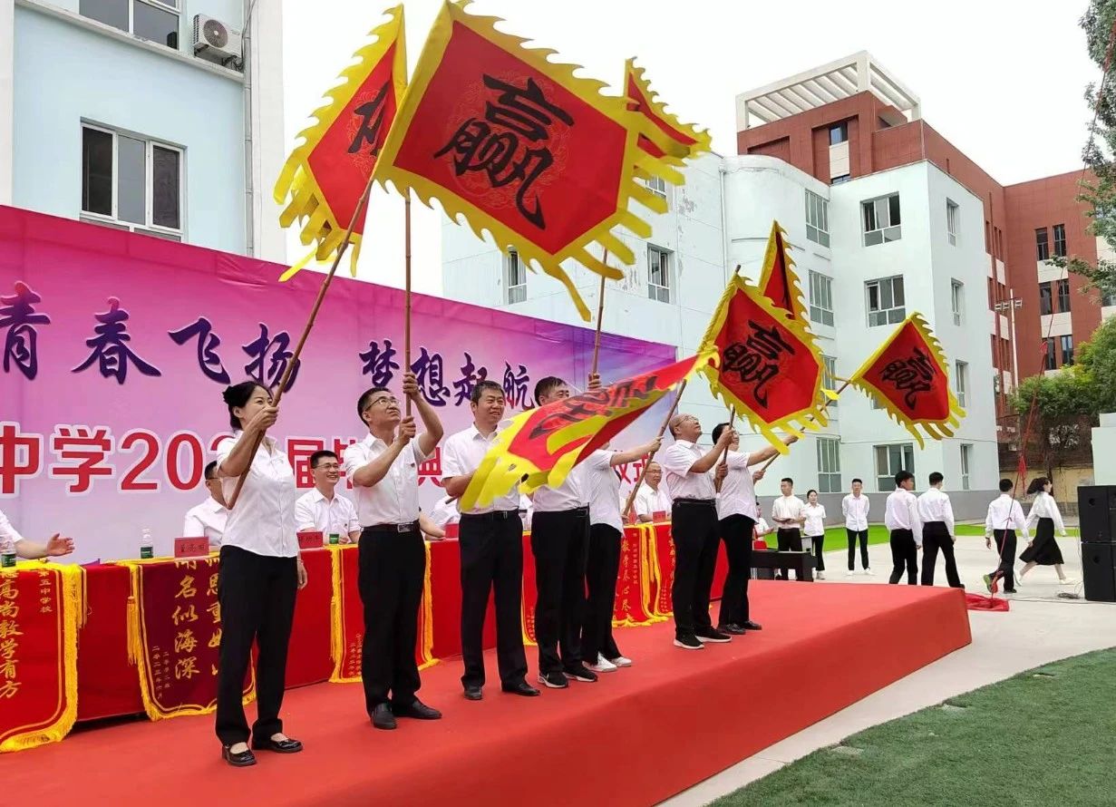 趙校長發(fā)布中考沖鋒,并由董亮田主任授出征旗,三年的征途,是夢想的基石,是光榮的荊棘路,是青春的禮贊,更是未來的希望。祝愿初三學(xué)子們六月中考蟾宮折桂,金榜題名,勇奪佳績,再創(chuàng)五中的新輝煌!