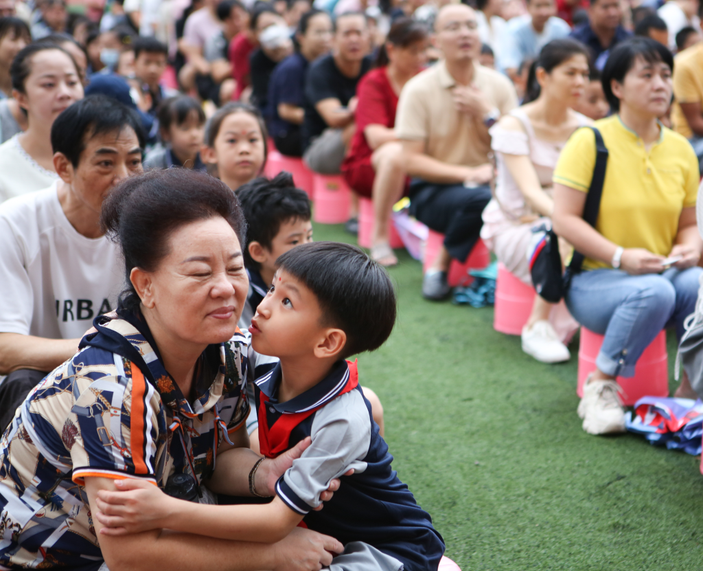 ??谑杏裆硨?shí)驗(yàn)學(xué)校一年級(jí)新生和家長(zhǎng)在“開筆禮”儀式活動(dòng)現(xiàn)場(chǎng)。新華社記者樊雨晴 攝