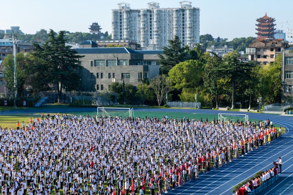 湖北省武昌實(shí)驗(yàn)中學(xué)師生在參加開學(xué)典禮。(杜子璇 攝)