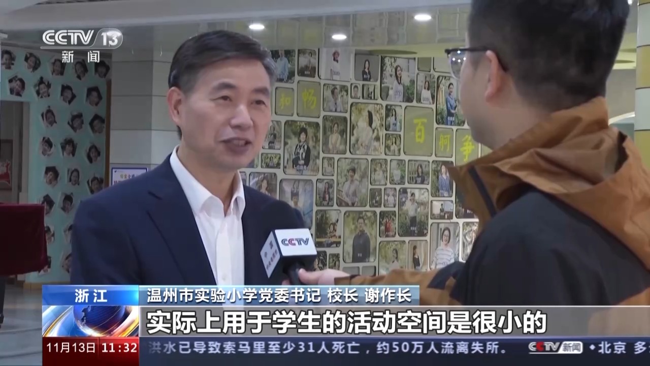 溫州市實驗小學(xué)黨委書記、校長 謝作長:如果在高樓到一樓操場,休息十分鐘,下樓已經(jīng)來不及了,所以最合理的辦法就是讓我們的走廊每個樓道能夠弄得越寬,每個樓層孩子就能夠在自己樓道進(jìn)行玩耍,這十分鐘才真正能落地。